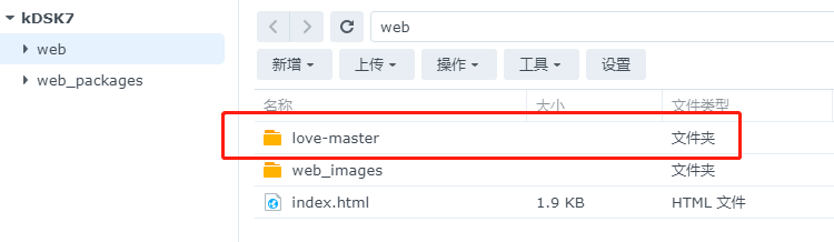 接着在本地计算机将其解压。解压后,可以直接将网页文件夹拖动到群晖系统中,此时我们可以先将其存放在web文件夹下