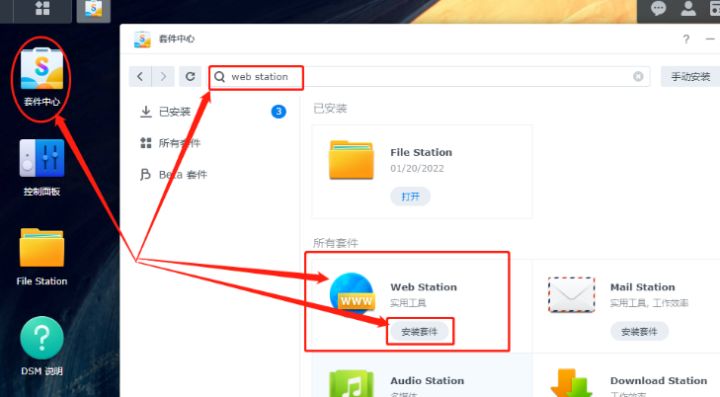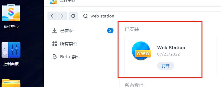 同样的步骤,我们再搜索并安装web station套件。