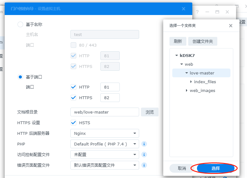 端口:去掉勾选80/443端口(80端口附加了很多web管理,为避免混淆,还是不要选它),勾选http并附加端口号81(群晖套件占用了大量端口,所以选个比较少用的);