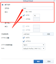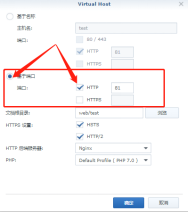 端口:去掉勾选80/443端口(80端口附加了很多web管理,为避免混淆,还是不要选它),勾选http并附加端口号81(群晖套件占用了大量端口,所以选个比较生僻的);