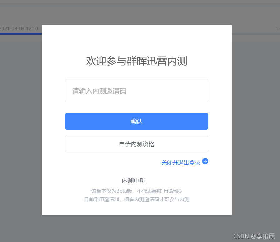 3、如果你还没有获得内测资格的,扫码登录成功后大约30秒左右,会弹出输入内测邀请码的窗口,在此输入内测邀请码 LUCKPSLYCC ,(无需申请内侧资格)点“确认”就可以使用了,可以在网页添加下载任务;