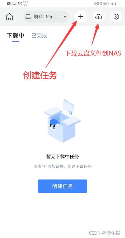 5、点+,也可以创建下载任务,手机迅雷APP可以远程下载到NAS哦;