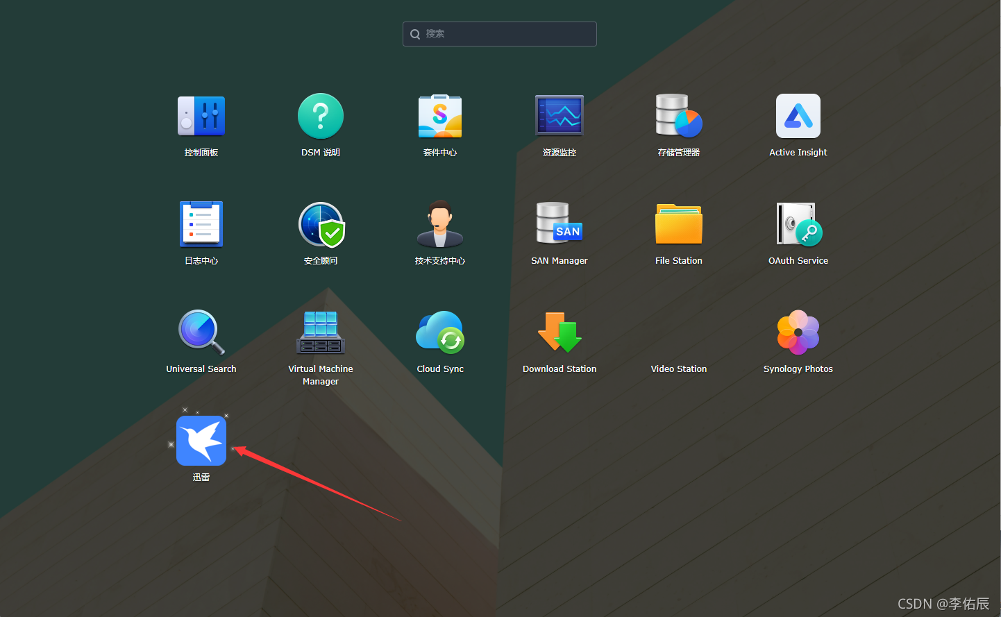 7、点左上角群晖主菜单,就看到刚刚安装的迅雷了;