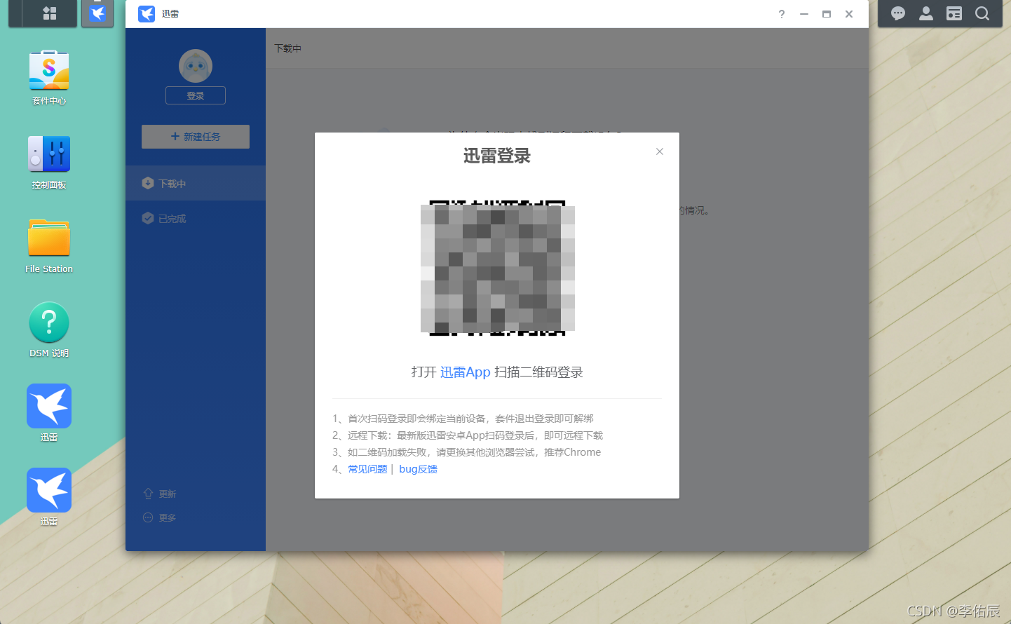 2、群晖的迅雷会出现一个二维码,打开手机迅雷APP,扫一下(手机有可能会提示需要下载插件,点下载插件);