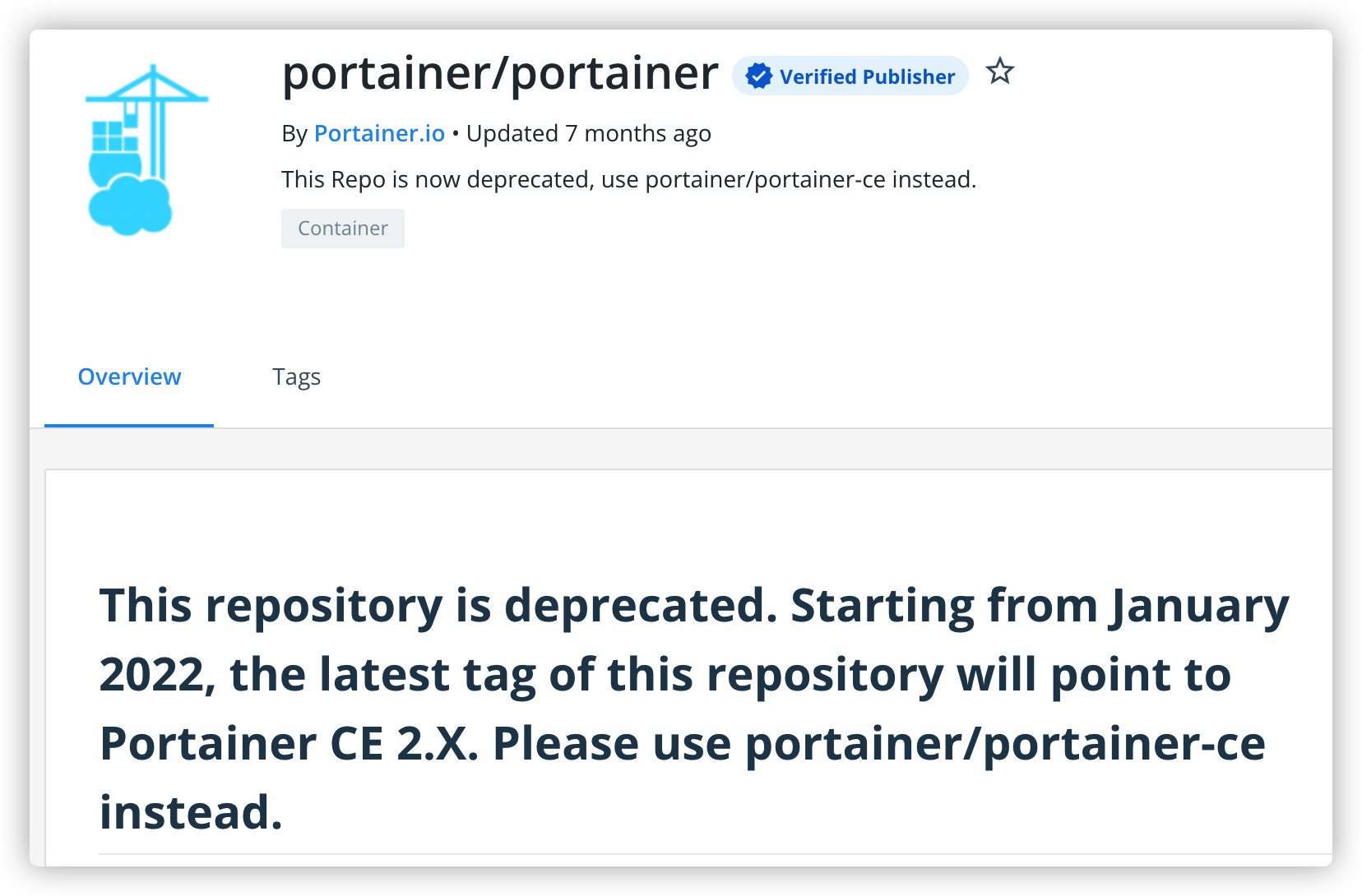 portainer的安装请看 『用portainer管理docker服务』,但是需要注意,搜索时请找portainer/portainer-ce而不是portainer/portainer,原因看下图:
