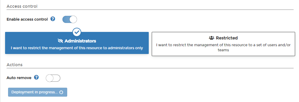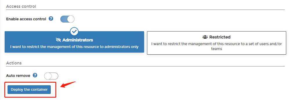 完成上述设置后,可以在 Access control 中点 Deploy the container 进行发布运行