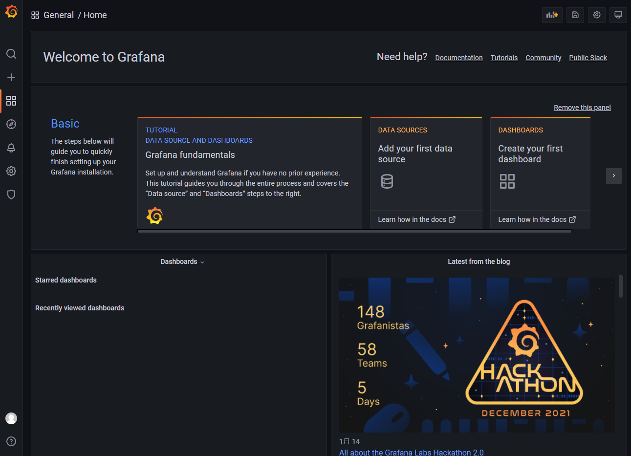 默认的账号为 admin,密码为 admin,输入完成后会要求更改密码,登录成功后就是主界面了,界面的整体风格跟之前介绍的 InfluxDB 非常类似