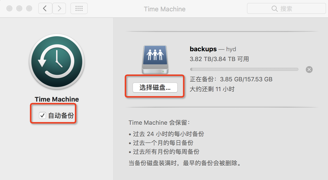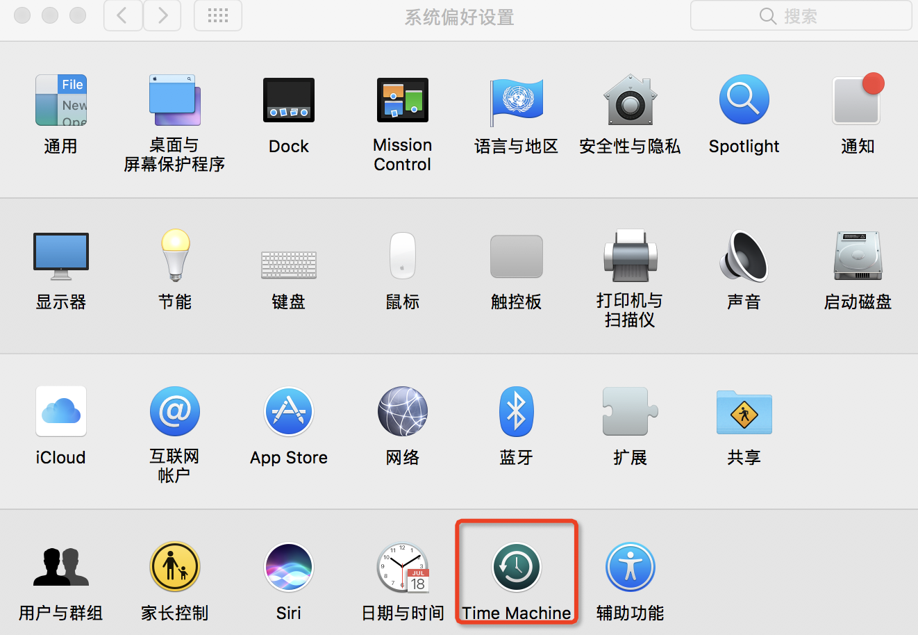 - Time Machine(“时间机器”)是Mac内建的备份工具,对Mac系统中所有文件进行自动备份,包括应用、音乐、照片、电子邮件、文稿和系统文件。
