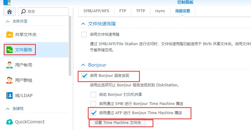 登录群晖NAS管理后台 ; 控制面板 ; 文件服务 ; 高级设置